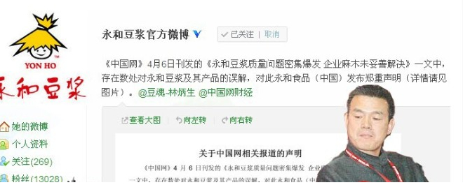 永和豆?jié){的質(zhì)量和管理問題:去年的“轉(zhuǎn)基因門”、“豆?jié){沖泡門”和今年發(fā)生的被消費(fèi)者質(zhì)疑“故意扣菜”、花生米漿保質(zhì)期內(nèi)變質(zhì)發(fā)臭致消費(fèi)者胃痛嘔吐,以及記者近日連續(xù)報(bào)道的涉嫌虛假宣傳等事件。永和豆?jié){官方微博發(fā)布的聲明中只回應(yīng)了“豆?jié){沖泡門”、涉嫌虛假宣傳和明確了其處理態(tài)度,而對(duì)另外三樁嚴(yán)重暴露其質(zhì)量管理漏洞的事件避重就輕,且舉例毫無說服力。
