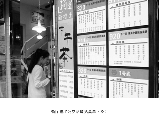 日前,一份特色“公交站牌式菜單”引來(lái)路人駐足圍觀,而據(jù)餐廳經(jīng)理透露,自從增設(shè)了這塊“站牌”,餐廳的生意也受到了積極的影響。