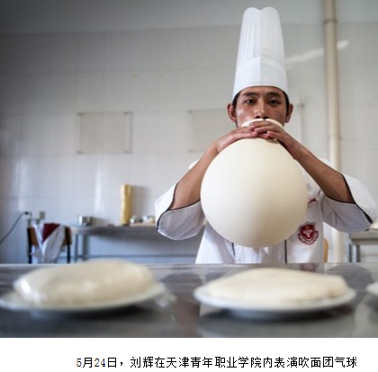 日前,劉輝在上海大世界吉尼斯紀(jì)錄挑戰(zhàn)中,甩出一根1918米的面,打破原“南詔一根面”1704米的世界紀(jì)錄,同時(shí)用面團(tuán)吹出直徑1.5米的“氣球”,獲得“最長(zhǎng)一根面”和“直徑最大的面團(tuán)氣球”兩項(xiàng)上海大世界吉尼斯紀(jì)錄。22歲的天津青年職業(yè)學(xué)院烹飪系教師劉輝,來(lái)自山西太原,學(xué)習(xí)面食技藝已經(jīng)5年多,堪稱(chēng)面食“達(dá)人”。
