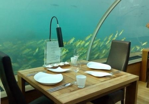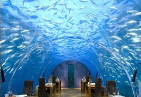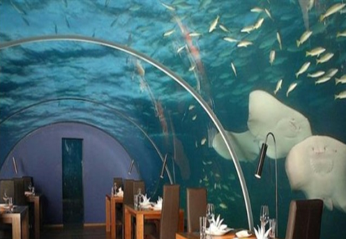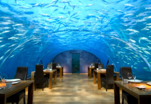 馬爾代夫港麗度假開設(shè)的第一個(gè)全玻璃海底餐廳。該餐廳為了慶祝他們的周年紀(jì)念而建,為客人也提供了體驗(yàn)機(jī)會(huì),不僅吃海下的,還在海下吃,睡在海下。真的是不可思議。意境也不用說(shuō)了,是多么壯麗。