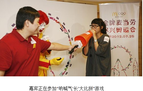 廣東三元麥當勞食品有限公司廣佛市場總經理鐘軍表示,麥當勞一貫堅持金牌標準,以金牌服務及金牌食品,不僅贏得了全球消費者的信賴,也贏得了與奧運合作36年的榮譽。作為奧運會的全球合作伙伴和官方合作餐廳,麥當勞今年不僅在倫敦為運動員及來賓提供金牌品質的食品和服務,也將為中國消費者打造高品質、零時差、最臨場的金牌奧運用餐體驗。"