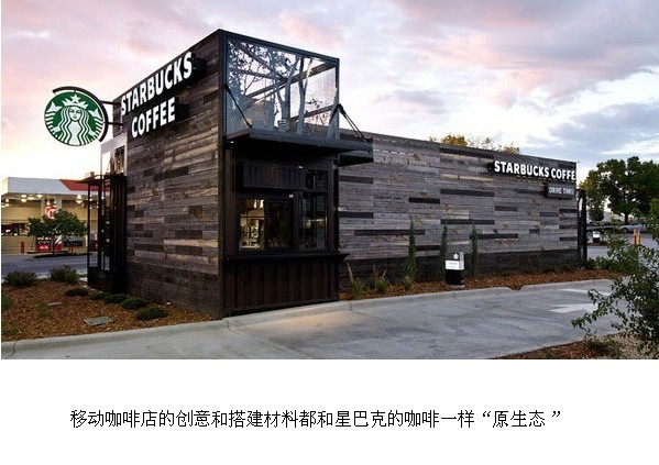 世界著名的咖啡公司星巴克(Starbucks)近日在美國(guó)科羅拉多州推出了他們的第一家移動(dòng)式咖啡店。不同于以往的星巴克咖啡店形式,這里沒有提供讓人小坐的舒適座椅也沒有考慮周到的電源插口,直白地說我們只能夠像吃路邊攤一樣等候在外面。設(shè)計(jì)師Anthony Perez希望通過現(xiàn)代模塊化的構(gòu)成方式和設(shè)計(jì)讓建筑變得更加靈活,并且能夠和周圍的環(huán)境很好的融合在一起無論是“有”還是“無”都不會(huì)破壞所處的環(huán)境,正是出于這樣一種考慮使得這個(gè)設(shè)計(jì)作品順利通過了美國(guó)LEED綠色建筑認(rèn)證。這個(gè)充滿了品味和藝術(shù)感的咖啡店能夠隨時(shí)跟隨著卡車來到人們身邊,為我們帶來不一樣格調(diào)和豐富的咖啡文化之旅。