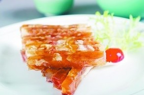 石耳和干筍是西南民族特色食材,非常適宜北方秋季食用。北京全聚德前門店的冷菜“石耳拌干筍”,創(chuàng)造性地將這兩種食材巧妙組合,搭配精心調(diào)配的醬汁,既酸辣適口,又營養(yǎng)豐富。此外,像北京全聚德前門店的“百合釀糕”,北京全聚德雙井店的“棗泥山藥糕”等創(chuàng)新面點(diǎn),更是紛紛選擇了百合、棗泥、山藥等秋天當(dāng)季盛產(chǎn)的食材,不僅口感香甜軟糯,而且健康養(yǎng)生。