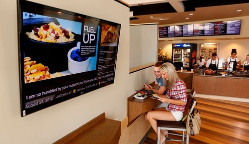 通過(guò)數(shù)字標(biāo)牌系統(tǒng)的構(gòu)建,餐廳就可以把主打菜品通過(guò)大屏幕靈活生動(dòng)的展現(xiàn)出來(lái),試問(wèn)在“跟著感覺走”的點(diǎn)餐過(guò)程中,顧客怎么會(huì)對(duì)大屏幕顯示中播放的熱騰騰、香噴噴的美味佳肴視而不見呢?而且,店內(nèi)的數(shù)字標(biāo)牌網(wǎng)絡(luò)還可與時(shí)下熱門的社交媒體,如微博、微信等,打造出美食討論圈,對(duì)顧客發(fā)布的相關(guān)美食信息、餐廳評(píng)論實(shí)時(shí)追蹤、展示,讓餐廳與“微博控”、“微信控”們保持互動(dòng),從而對(duì)顧客消費(fèi)習(xí)慣進(jìn)行輿論引導(dǎo),提高菜品的推廣效率。