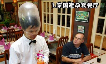 在泰國這家餐廳居然以安全套為主題,不免會臉紅心跳。放眼望去,餐廳內(nèi)皆是安全套,即使是菜品的名稱也與它有關。超有情趣的室內(nèi)裝潢,再加上泰國地道的風味美食,使得這家特色餐廳成為了一道靚麗的風景。此外,吃完飯后,服務員送上的并不是薄荷糖,而是一枚安全套! 真是讓你想不到!