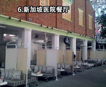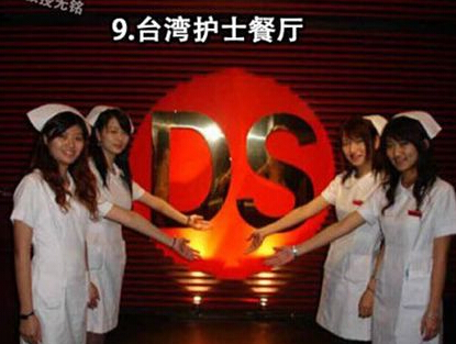 臺灣有家主題餐廳經(jīng)營風格另類,服務生穿上護士服,餐桌上還有提供飲料的“點滴”。進入餐廳后,客人甚至可以要求坐在輪椅上,請服務生幫忙推進去。餐廳內(nèi)墻壁上掛X光片、視力測量表,飲料則在點滴瓶內(nèi)。另有試管飲料,由服務生推著“護理推車”,用針筒把“試管酒”飲料“注射”到消費者嘴巴里。