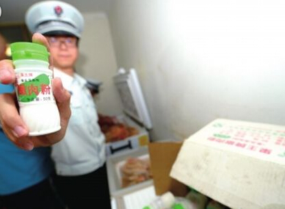 在牛某的房間內(nèi),執(zhí)法人員找到數(shù)瓶嫩肉粉,這種嫩肉粉標簽上說明為:每500克(1斤)加5克。但牛某承認,他都是隨意添加,沒有固定用量。