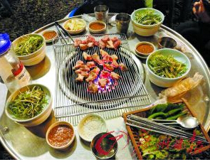 在浦項,車友們終于吃上了一頓韓式炭火烤肉。