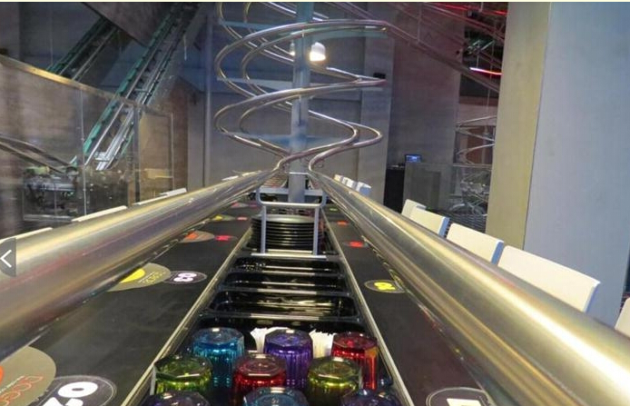 據(jù)報道,該餐廳名為ROGO's,餐廳內(nèi)每張餐桌都配備有專門為其設(shè)計的過山車軌道,共30多條,客人通過智能終端點餐,裝在密閉容器中的食物通過這些過山車軌道被投遞到客人的餐桌上。軌道上的傳輸系統(tǒng)保證了食物運輸途中的零噪音,全程自動化操作,非常便捷高效。