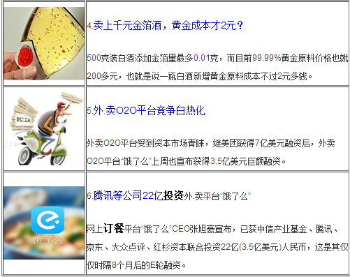 洋快餐不僅在中國(guó)的市場(chǎng)遭受挫折,在美國(guó)本土也因?yàn)榉N種問題導(dǎo)致銷售滑坡,百勝集團(tuán)公布第四季度財(cái)報(bào)虧損巨大,麥當(dāng)勞CEO黯然下臺(tái)。春節(jié)近了,衛(wèi)計(jì)委擬批準(zhǔn)金箔為食品添加劑,因?yàn)闊嶙h。外賣平臺(tái)受到資本市場(chǎng)青睞,繼美團(tuán)獲得7億美元融資后,外賣O2O平臺(tái)“餓了么”上周也宣布獲得3.5億美元巨額融資。一起來關(guān)注本周餐飲熱點(diǎn):