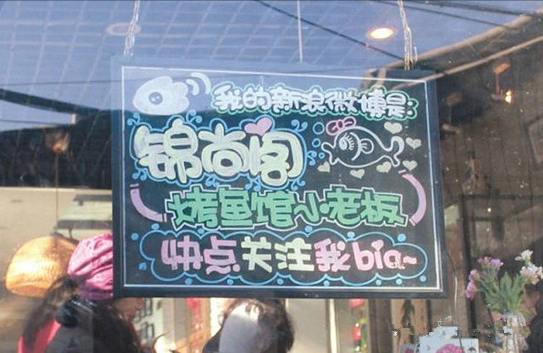 烤魚店開在胡同里,曲徑通幽,但人流量畢竟有限,作為廣告系畢業(yè)生的唐棠如何來推廣宣傳自己呢?唐棠介紹,她開店那會兒,趕上微博熱,于是她立即注冊了一個微博號,用戶名是“錦尚閣烤魚館小老板”,并附上自己的訂餐電話。在微博里,她每天勤勤懇懇地更新,內(nèi)容不全是店里的廣告,而是很多開店的趣事以及自己的生活片段,比如有一條微博是這樣寫的:“員工因家鄉(xiāng)不同,一會兒有離職要去收麥子的,一會兒有離職要去敲松子的,一會兒又有要回家收玉米的……導致我現(xiàn)在對農(nóng)廣天地的收獲時段了如指掌”;“來了一個帥得飛起來的男孩兒,女服務(wù)員們都瘋起來、爭著要服務(wù)這一桌,我批評了她們:服務(wù)行業(yè)怎么能失態(tài)不淡定!怎么能區(qū)別對待!你們知不知道,店是我的,你們是我的,好看的男客人也是我的!這桌我來服務(wù),你們都忙別的去吧……”這些詼諧有趣的情節(jié)以及老板的美照俘獲了眾多同齡人的心,目前她的微博共吸引了5000多名粉絲。唐棠說:“只要勤更新,微博的宣傳效果的確非常顯著而且很持久,開店沒多久,粉絲們就源源不斷地上門來品嘗烤魚,有很多人成了小店的回頭客。到現(xiàn)在,我的新浪微博名字一直寫在小黑板上,掛在店外,來回經(jīng)過的路人有時候也忍不住好奇心關(guān)注我的微博,變成潛在客戶!