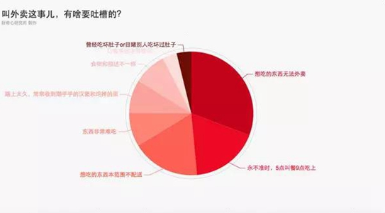 「好奇心研究所」此前做過一次“叫外賣這事兒,有啥要吐槽的?”的投票,我們收獲了共 1871 次表態(tài),結(jié)果表明:對外賣實(shí)際口味的投訴遠(yuǎn)遠(yuǎn)少于對幻想中的外賣的憧憬——30.7% 的投票是在抱怨想吃的東西無法外賣;17.7% 在抱怨所在區(qū)域內(nèi)可選外賣太少,想吃的東西都不在配送范圍內(nèi)。