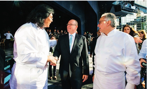 2012年11月的某一天,摩納哥路易十五餐廳里聚集了240位來自世界各地的名廚,這些廚師總共擁有300顆米其林星星,全部是擁有著“世界御廚”美譽(yù)的法國頂級(jí)大廚Alain Ducasse的邀請(qǐng),來參加Alain Ducasse集團(tuán)25周年慶典。大董是其中唯一一位華人廚師,合影時(shí)主辦方特意將他安排在最前排。