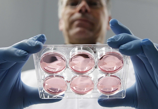 生產(chǎn)實(shí)驗(yàn)室培養(yǎng)肉的干細(xì)胞大多取自牛的肌肉組織。提取出來的干細(xì)胞,在實(shí)驗(yàn)室的營養(yǎng)物質(zhì)和促生長的化學(xué)物催化下進(jìn)一步發(fā)育繁殖。3個(gè)星期后,100多萬個(gè)干細(xì)胞就繁殖出來了,研究人員接著把它們放入實(shí)驗(yàn)室的培養(yǎng)皿中,這些干細(xì)胞就會融合成為一條條約一厘米長、幾毫米厚的肌肉條。
