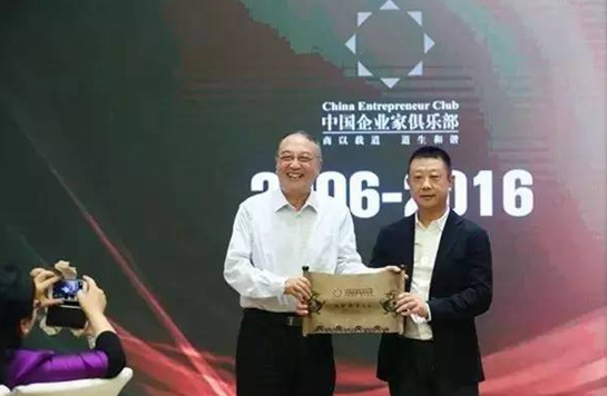 中國(guó)企業(yè)家俱樂部主席柳傳志為海底撈張勇授牌