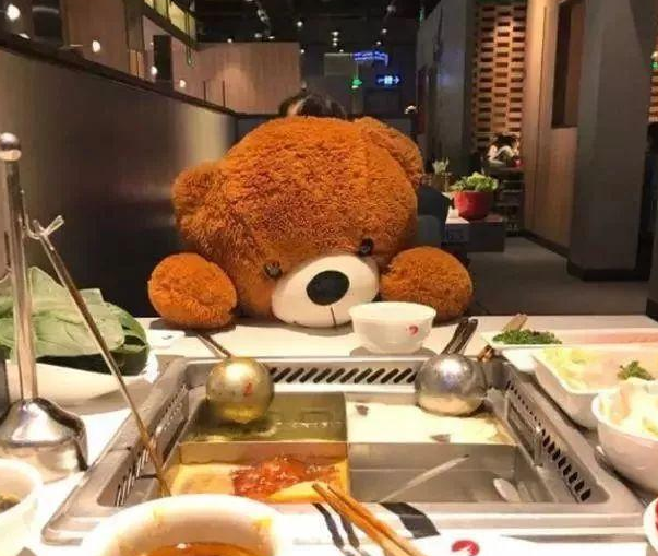 再打個(gè)比方,“熊熊”既然能在海底撈里陪單身狗吃飯,那么,是不是可以考慮,把“熊熊”作為一種周邊商品賣給消費(fèi)者呢?海底撈的熊熊,一只不說話只傻傻地看著你吃的熊熊,一只陪你到天明的熊熊,一只不離不棄的熊熊……